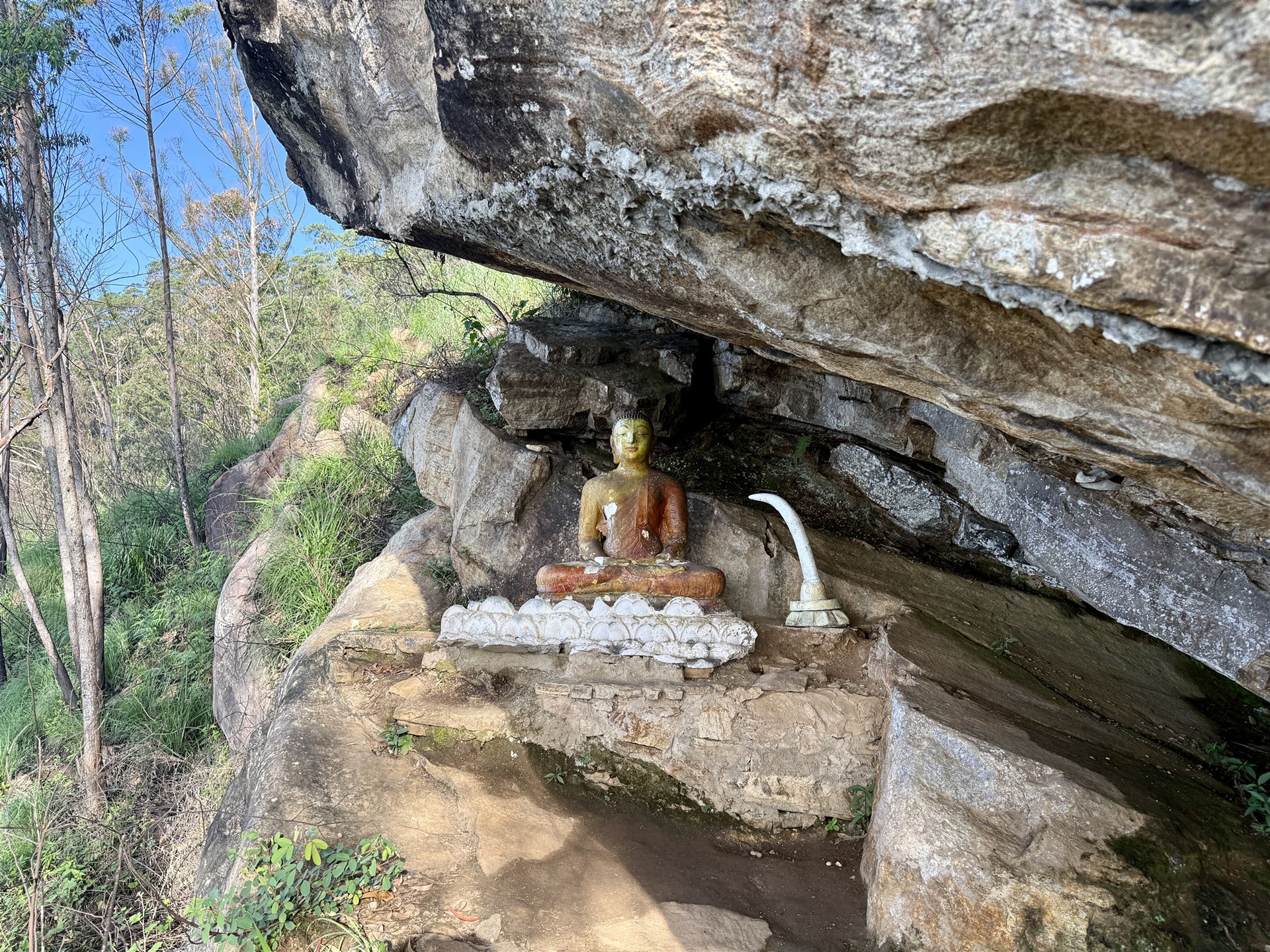 Buduruwagala / ʘ wurden im 10. Jahrhundert nach Christus, der Blütezeit des Buddhismus auf Sri Lanka, sieben aufrecht stehende Felsenbuddhas aus dem Granit gemeißelt. Obwohl die mittlere Figur mit 17 Meter Höhe die größte stehende Buddha-Statue auf der Insel ist, wurden die Statuen erst in den 1920er Jahren wiederentdeckt.