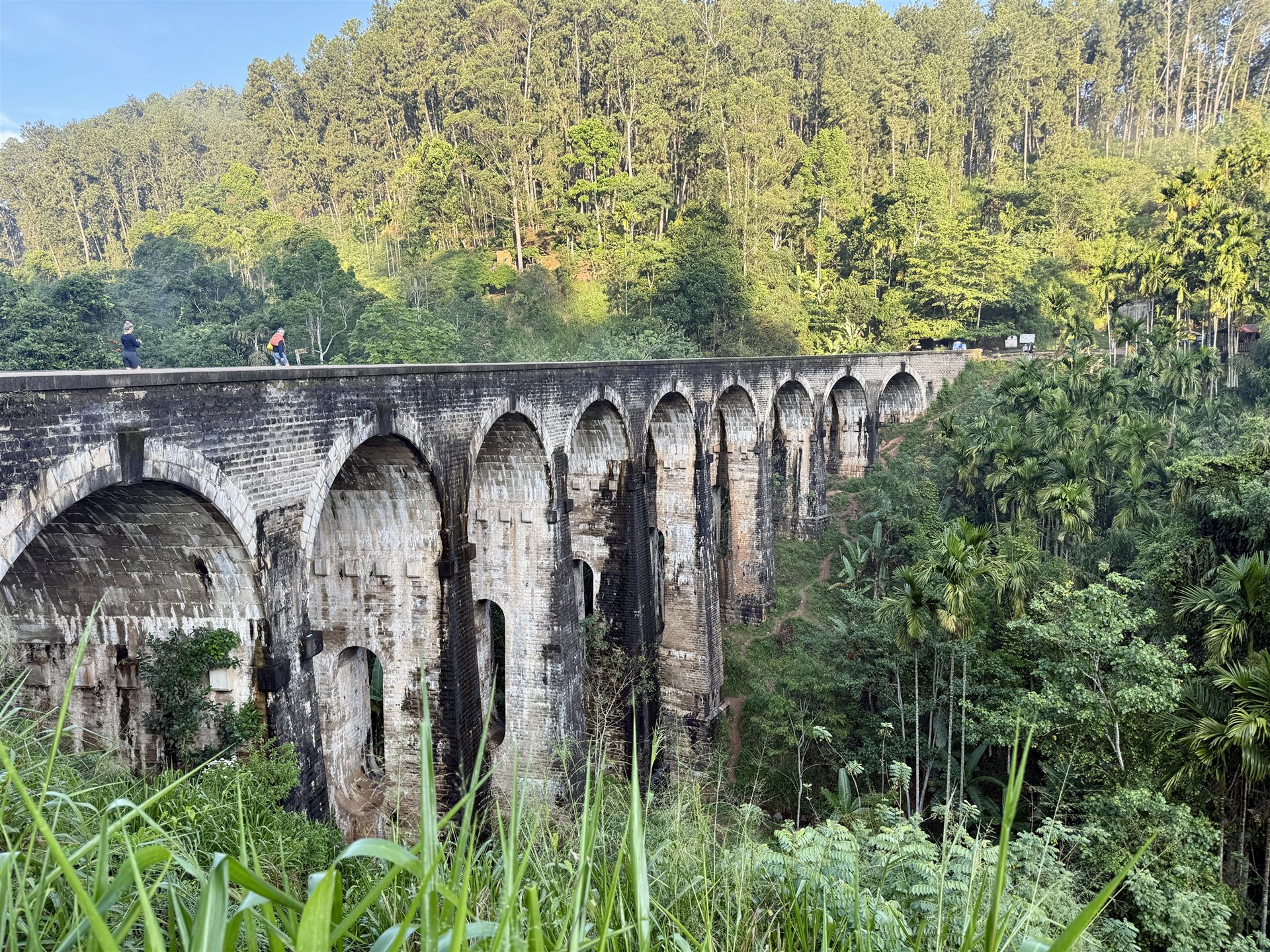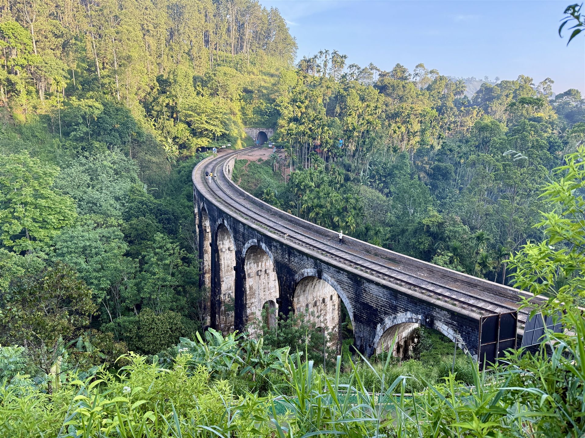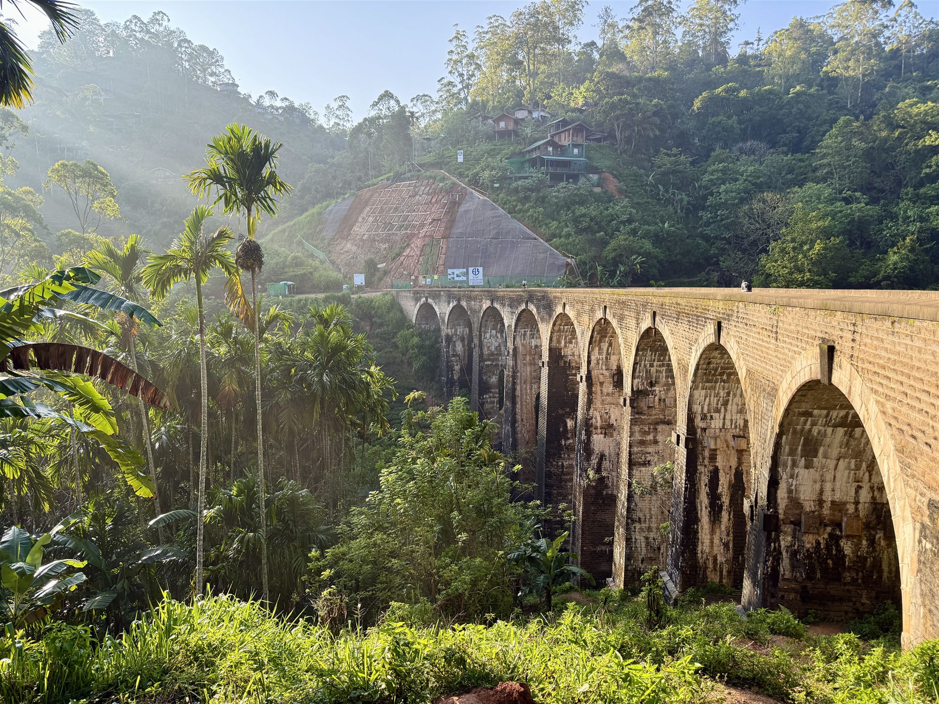 Das wohl bekannteste Motiv Ellas, wenn nicht ganz Sri Lankas, ist die Nine Arches Bridge / ʘ. Diese 90 Meter lange Brücke wurde Anfang des 20. Jahrhunderts von den Briten erbaut und bietet mit ihren namensgebenden neun Bögen ein unglaublich schönes Motiv, denn sie verläuft mitten durch grünen Dschungel und saftige Teeplantagen. Man kann über die Bahnschienen zur Brücke laufen oder mit dem Roller bzw Tuktuk zur Brücke fahren. Das beliebteste Fotomotiv ist in den Teeplantagen leicht unterhalb der Brücke und den schönsten Blick hat man von einem der erhöht liegenden Cafés und Restaurants. Die beste Zeit um die Nine Arches Bridge zu besichtigen ist zum Sonnenaufgang.