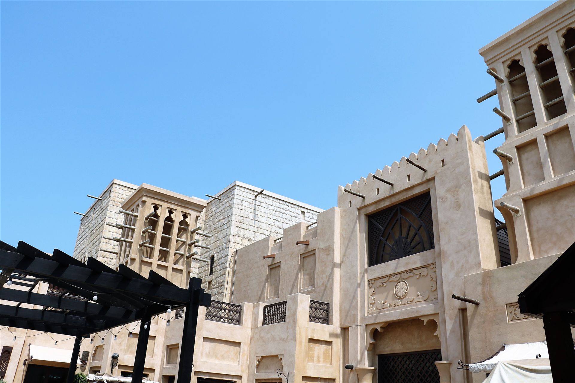 Auf der anderen Seite des Dubai Creek, quasi direkt gegenüber des Dubai Gold Souk, befindet sich das Stadtviertel Al Fahidi. Das Stadtviertel, das auch al Bastakiyya genannt wird, gehört, genau wie die Souks, zu den ursprünglicheren Dubai Sehenswürdigkeiten. Das Besondere: Nicht die glitzernden Wolkenkratzer und luxuriösen Malls bestimmen hier das Stadtbild, sondern traditionelle Wohnhäuser, Kamele und enge Gässchen, in denen sich heute Ateliers und Cafés ballen – ein großer Kontrast zu der sonst so durchgeplanten und modernen City und gerade deshalb unbedingt einen Abstecher wert. Immerhin handelt es sich um den ältesten Teil Dubais, von dem Teile bereits seit dem 19. Jahrhundert existieren. Vor dem Abriss bewahrt und detailgetreu restauriert, gibt euch das Viertel al Bastakiyya Einblicke in die Zeit, in der Dubai nicht von Öl, sondern von der Fischerei und dem Handel mit den Perlen, die von Tauchern schon vor Hunderten von Jahren aus dem Ozean gefischt wurden, geprägt war.
