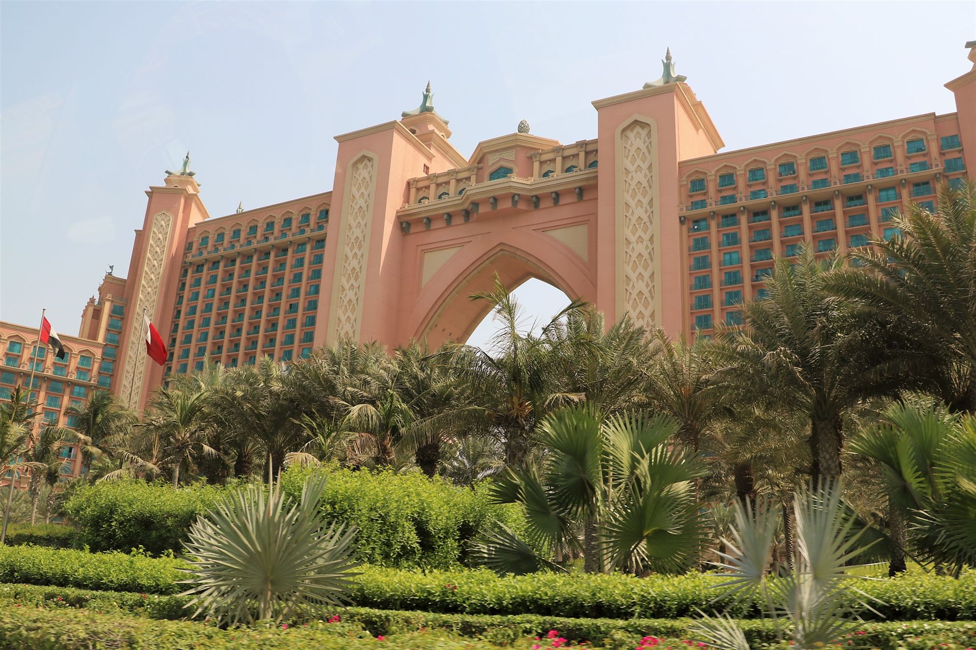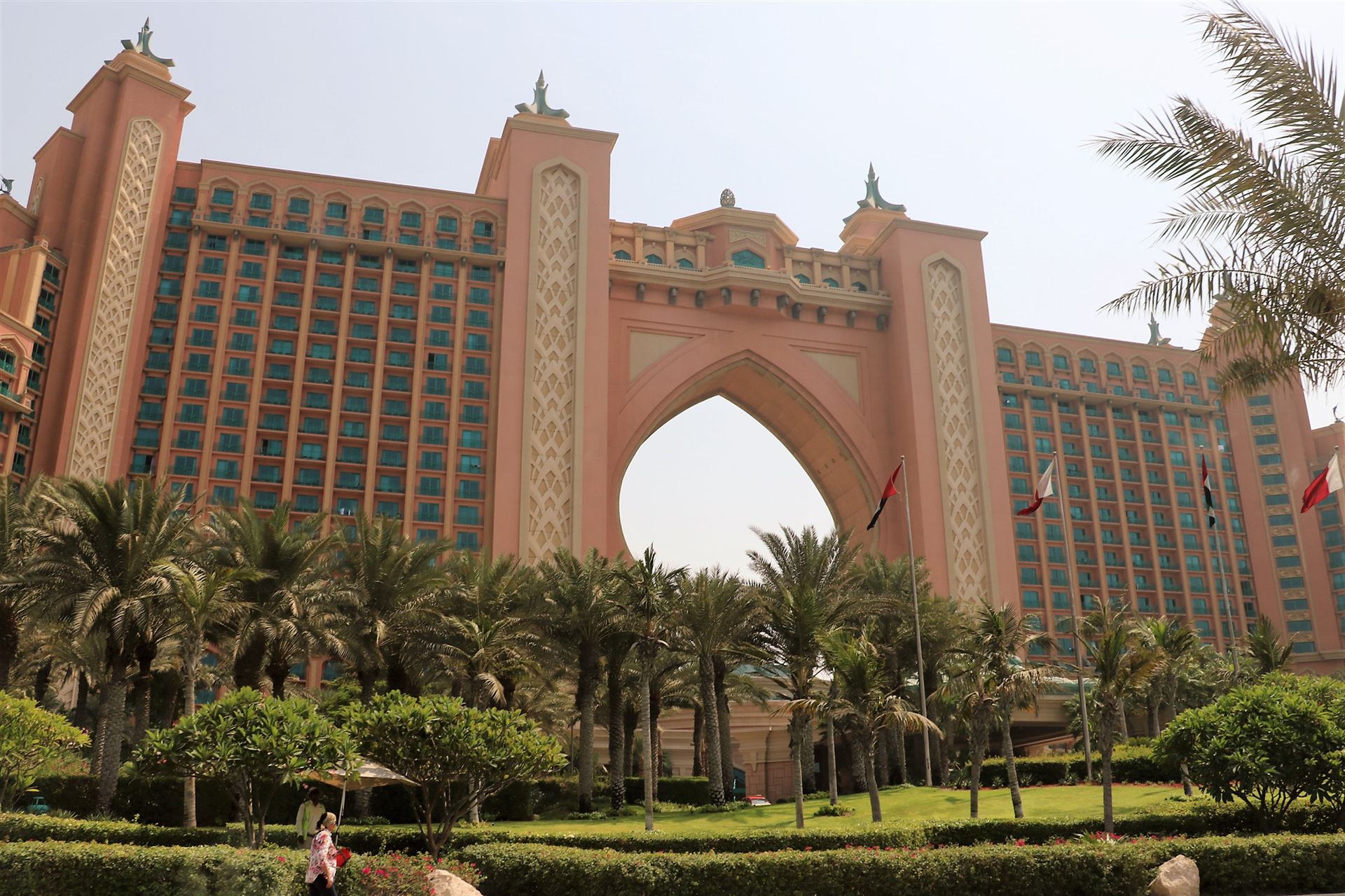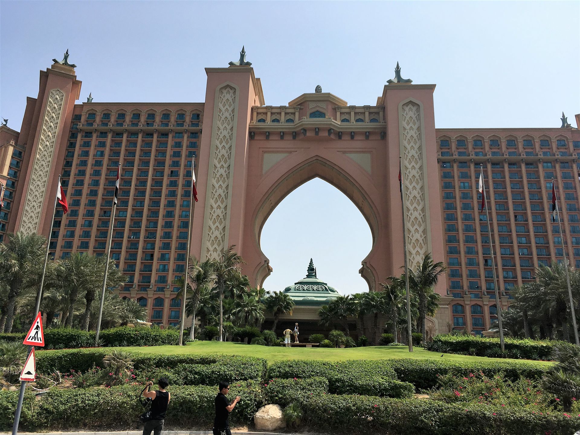 Das berühmte 5 Sterne Luxushotel Atlantis The Palm / ʘ, eine der Top Dubai Sehenswürdigkeitenim Dubai. Majestätisch thront es auf der Palm Jumeirah / ʘ, der künstlich angelegten Palminsel im Persischen Golf, die ebenfalls zu den absoluten Dubai Highlights gehört. Sogar vom Weltall aus ist die Palm Jumeirah noch sichtbar.