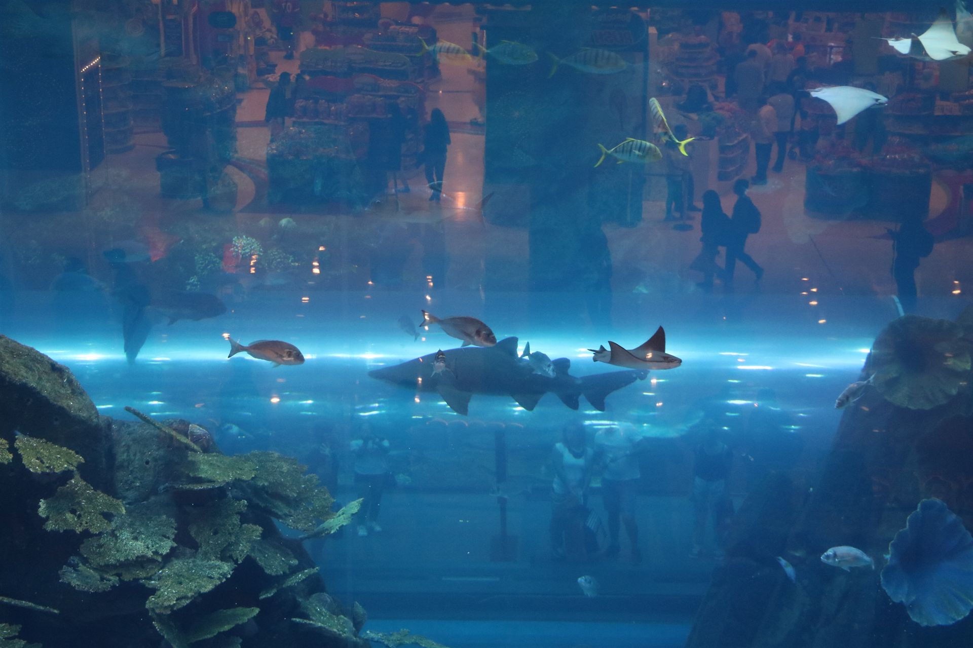 Der perfekte Ort für die extrem heißen Sommernachmittage in den Vereinigten Arabischen Emiraten ist die klimatisierte Dubai Mall / ʘ , eines der größten Einkaufszentren der Welt. Auch sie ist ein Ort der Superlative und eine der berühmtesten Dubai Sehenswürdigkeiten. Hier befinden sich auf über 350.000 Quadratmeter über 1.200 Shops. Einige der bekanntesten Attraktionen der Dubai Mall sind das Dubai Aquarium & Underwater Zoo, der Dubai Ice Rink und The Dubai Mall Waterfalls.