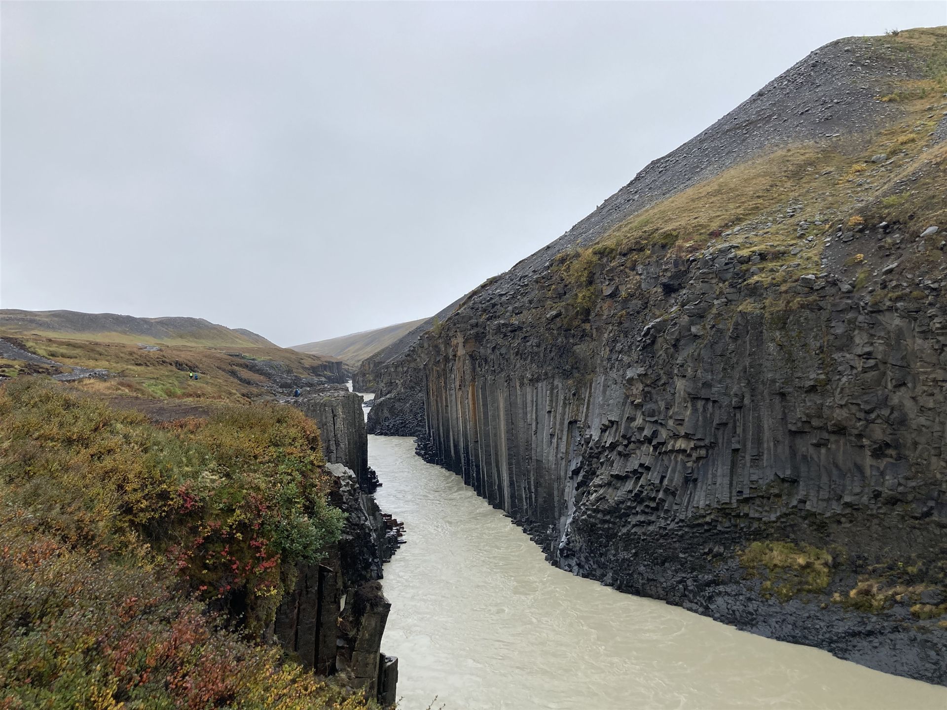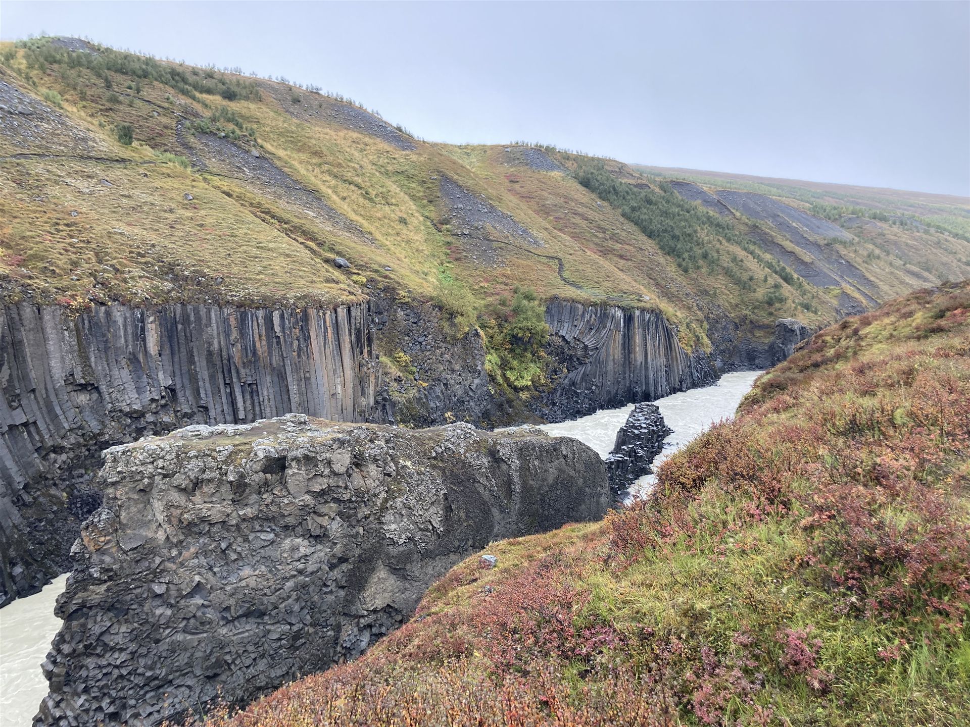Im Osten liegt der außergewöhnliche Stuðlagil Canyon / ʘ tief im Gletschertal Jökuldalur versteckt. Wer sie besuchen möchte, muss wandern. Der nächste größere Ort ist Egilsstaðir und liegt knapp 70 Kilometer entfernt. Doch ganz so weit ist die Wanderung nicht. Dieser Teil des Landes ist bekannt für seine Bauernhöfe. Zwei davon - Klaustursel / ʘ und Grund / ʘ- liegen an der Straße 923 und offerieren kostenlose Parkplätze. Von hier aus sind es knappe vier Kilometer zu Fuß bis zu der Basaltformation.