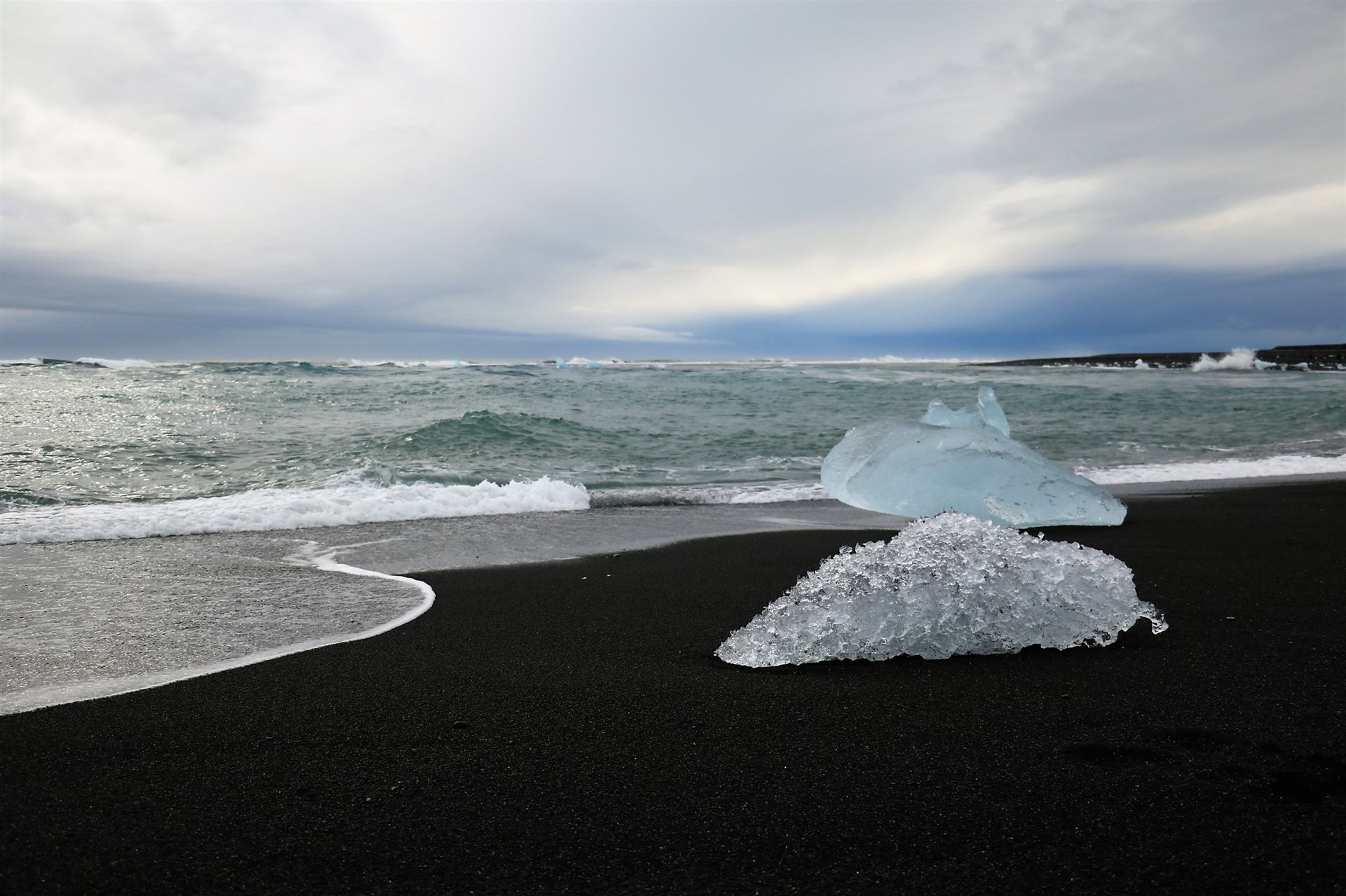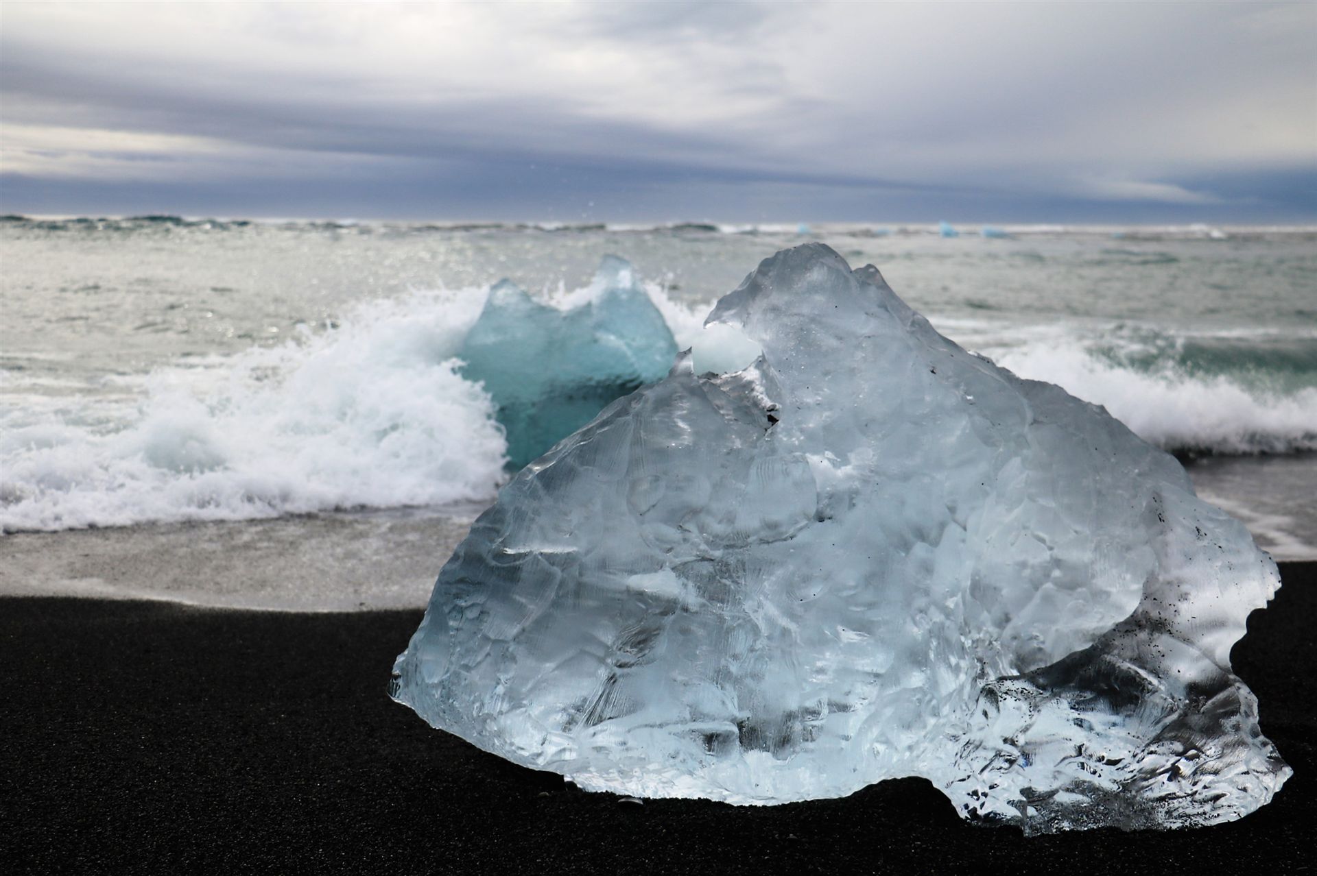 Am Diamond Beach / ʘ werden die Eisberge, die die Gletscherlagune Jökulsárlón füllen, an Land gespült und bilden einen starken Kontrast zum schwarzen Vulkansand. Dieser schöne Anblick macht ihn zu einem beliebten Ort für Fotografen. Auch Naturliebhaber kommen hierher, denn viele Robben nennen den Strand ihr Zuhause, und es ist einer der besten Orte im Land, um Orcas vom Ufer aus zu sehen.