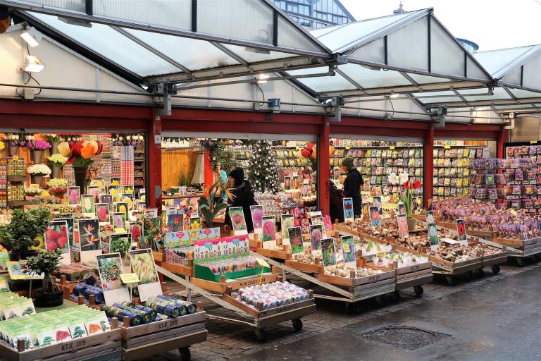 Am Waterlooplein Market / ʘ wird an sechs Tagen in der Woche ein Flohmarkt abgehalten. Es gibt dort rund 300 Verkaufsstände. Der Begijnhof / ʘ ist ein Ort der Stille mitten in der Stadt. Er gehört zu den bekanntesten „Hofjes“ der Stadt – Hofjes bestehen aus Häusern, die sich um einen Innenhof reihen und oft von Begijn (Beginen) bewohnt waren. Beginen sind Frauen, die wie Nonnen fromm und keusch in einer Gemeinschaft lebten, ohne jedoch je ein Gelübde vor Gott abgelegt zu haben. Sie kümmerten sich um Kranke und unterrichteten Arme. Auf den schwimmenden Kähnen am Bloemenmarkt / ʘ bekommt man von Tulpen bis Geranien.