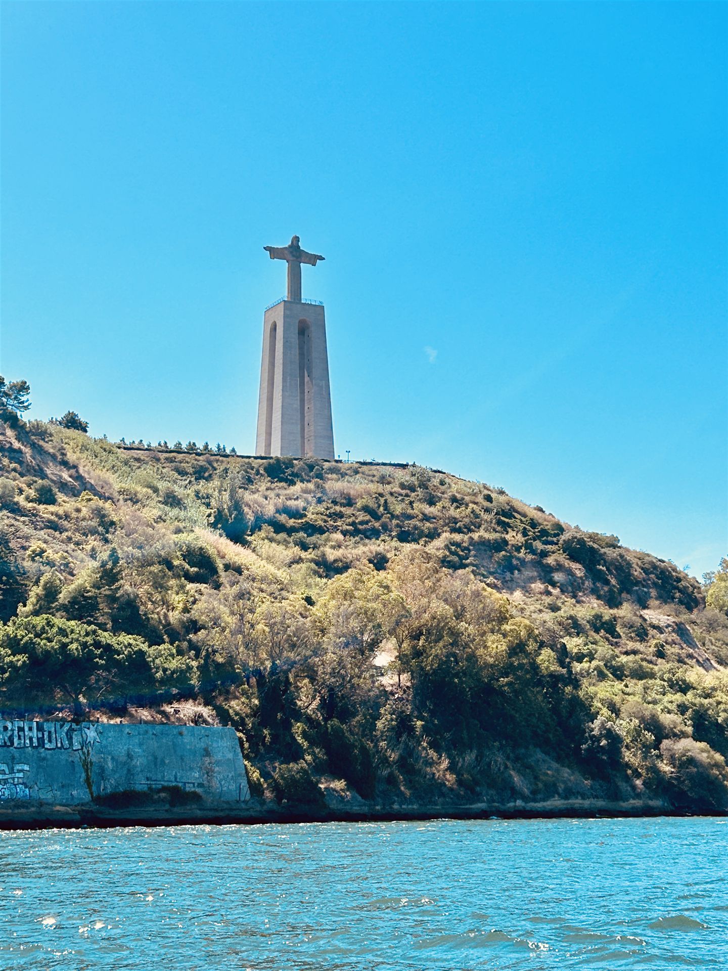 Am Südufer des Tejo thront die Cristo-Rei Statue / ʘ mit ausgestreckten Armen über Lissabon. Gleich neben der Ponte de 25 Abril. Schon am Fuße der Jesusstatue hat man einen wunderbaren Ausblick über den Fluss und die Stadt. Mit dem Lift gelangt man auf den 82 Meter hohen Sockel, auf wiederum die 28 Meter hohe Statue steht. Von dort oben ist Ausblick über den Tejo, Lissabon, Almada und noch weiter bis hin zum Atlantik gigantisch.