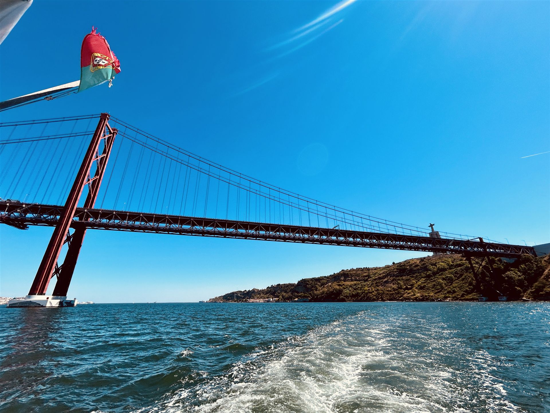 Die Ponte 25 de Abril / ʘ ist wohl eines der bedeutendsten Wahrzeichen von Lissabon und überspannt auf 2278 Meter den Tejo. Die Brücke des 35. April, die entfernt an die Golden Gate Bridge von San Franscisco erinnert ist nach der Yavuz-Sultan-Selim-Brücke und der Tsing-Ma-Brücke die drittlängste Hängebrücke der Welt, auf der sowohl eine Straße als auch Eisenbahnschienen verlaufen. Die Brücke verbindet den Lissabonner Stadtteil Alcântara mit der Stadt Almada.