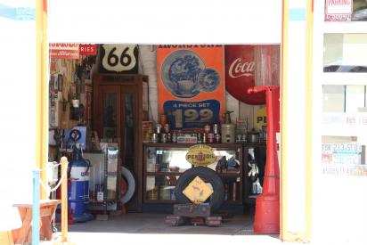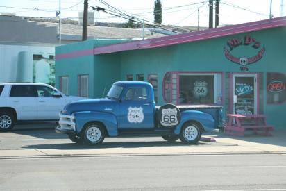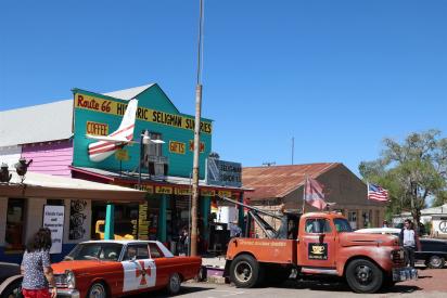 Östlich und westlich der Stadt Kingman befinden sich noch erhaltene Teile der ursprünglichen Route 66. Das Route 66 Museum / ʘ im alten "Powerhouse" gewährt spannende Einblicke in die Anfangszeit der Straße sowie die Siedlungsgeschichte der USA. Fireside Cocktail Lounge / ʘ. Truckstop bei Kingman / ʘ.