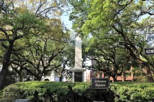 Die so genannten Squares, bestimmen bis heute das Grundschema des Stadtbilds. Am Chippewa Square / ʘ stand die Bank auf der Forrest Gump seine Pralinenschachtel öffnet. Der Lafayette Square / ʘ. Der Monterey Square / ʘ. u.v.m. Der Forsyth Park / ʘ ist ein bedeutender urbaner Bestandteil, da er dem Pariser Stil nachempfunden wurde und eine erholsame Grünfläche inmitten der Großstadt darstellt.