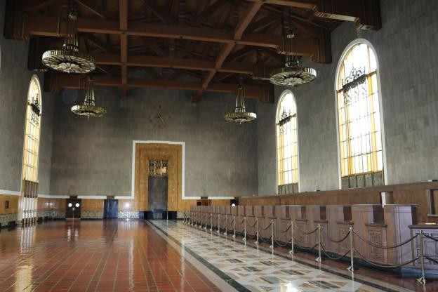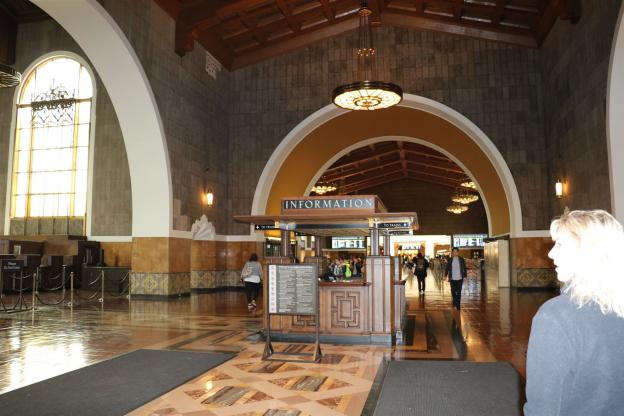 Den berühmtesten Bahnhof von Los Angeles, die Union Station / ʘ, erkennt man aus zahlreichen Spielfilmen, vor allem aber beeindruckt die Architektur. Es ist ein wahres Schmuckstück im Missionsstil, mit dem Glanz alter Zeiten. Der 1939 erbaute Bahnhof, ausgelegt mit Marmorböden und überzogen von kathedralenartigen Decken, versprüht ein einmaliges Flair.