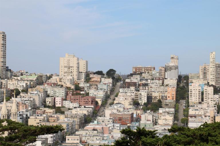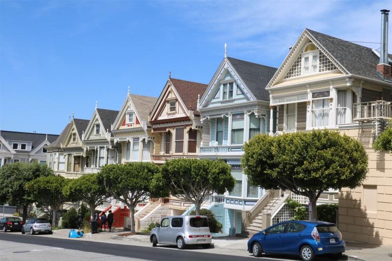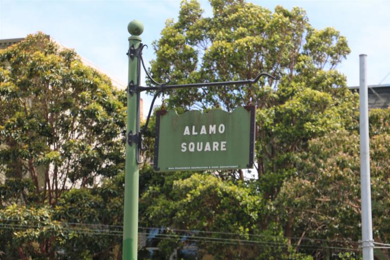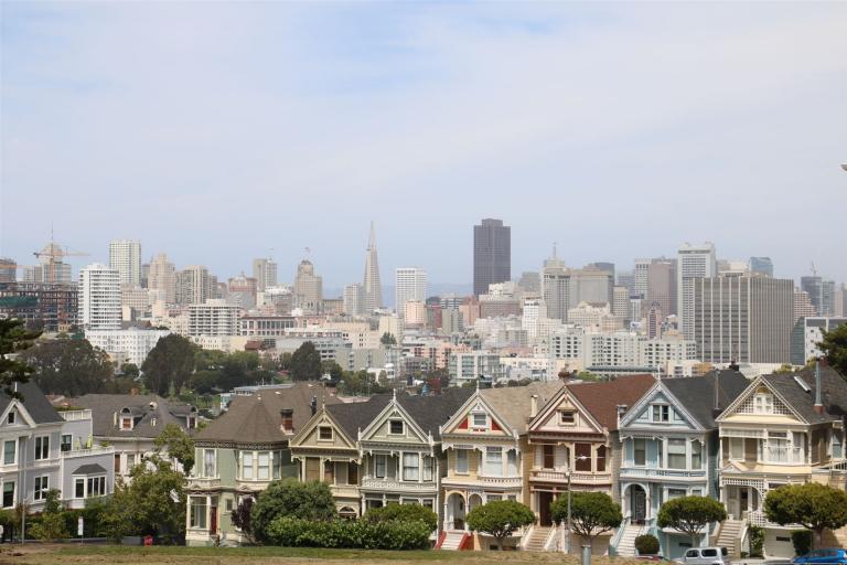 Der historische Park und Stadtteil Alamo Square / ʘ ist berühmt für seine Postkarten-Aussichten auf die typischen viktorianischen Gebäude - die sogenannten Painted Ladies / ʘ, bunt gestrichene Holzhäuser, die wurden mit der Serie Full House berühmt.