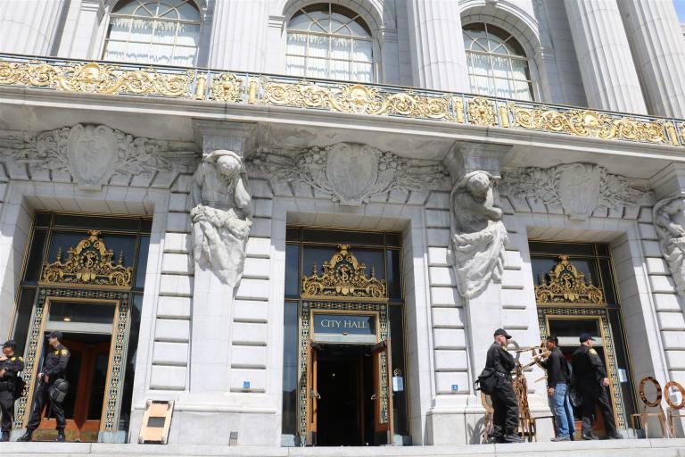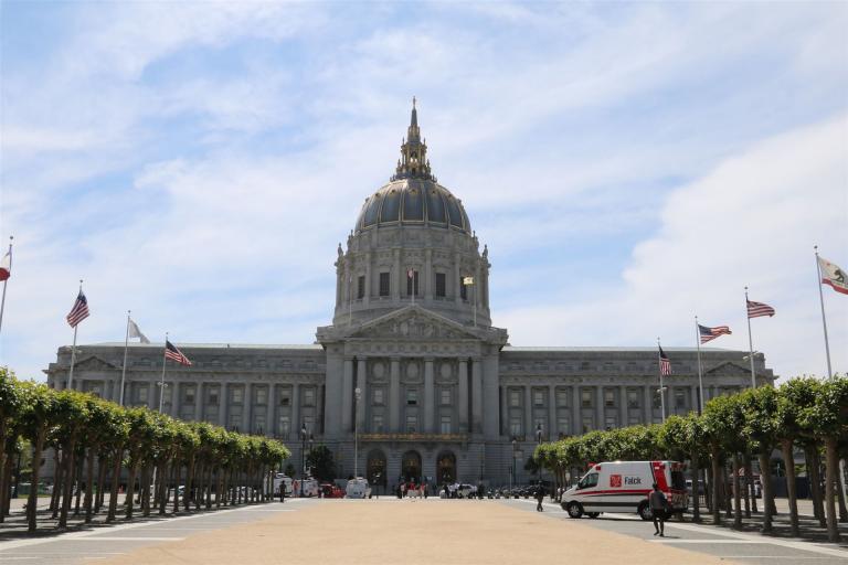 Die Grace Cathedral / ʘ ist die drittgrößte bischöfliche Kathedrale der USA und krönt den Nob Hill. Die Transamerica Pyramid / ʘ mit Verkaufs- und Büroräumen ist 260 Metern Hoch und hat 48 Stockwerke. Der Union Square / ʘ. Die San Francisco City Hall / ʘ ist das Rathaus der Stadt.