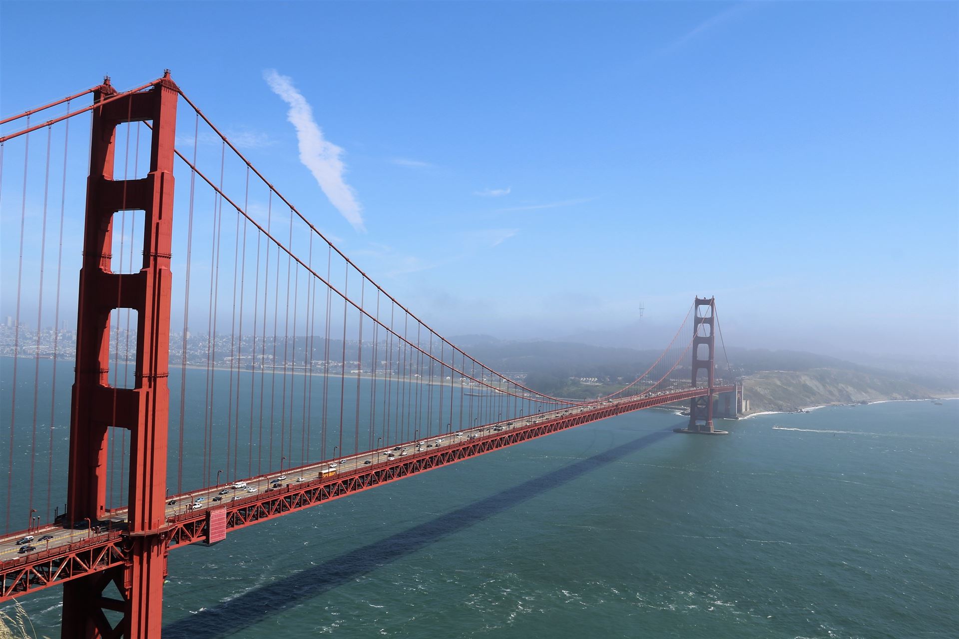 Die Golden Gate Bridge / ʘ mit einer Länge von 2.737 Meter bei einer Spannweite von 1.280 Metern das Wahrzeichen der gesamten Bay Area.