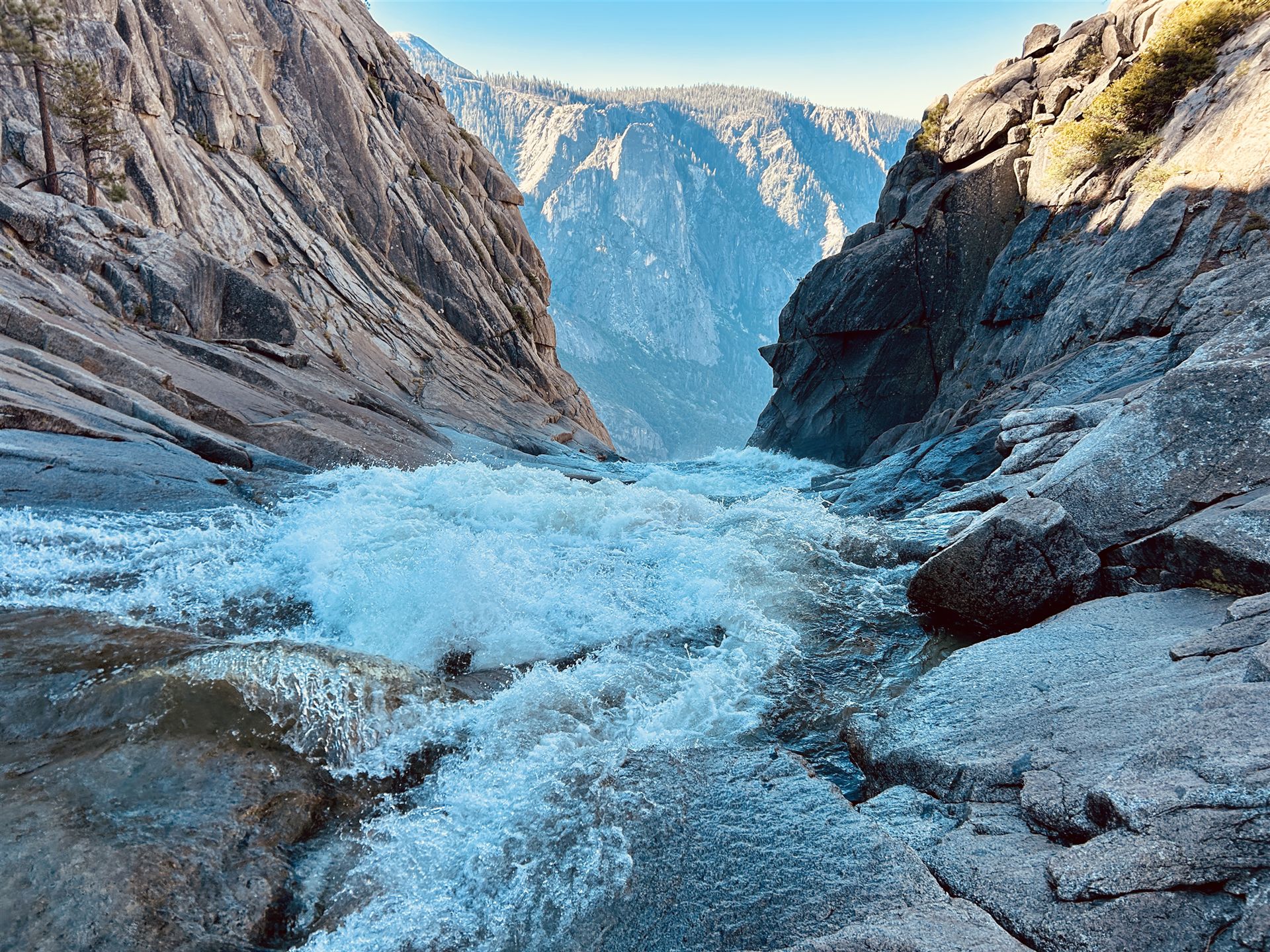 Einer der bekanntesten und auch eindrucksvollsten Trails beginnt direkt im Yosemite Valley ist der Mist Trail. Auf insgesamt 11 Kilometer und mit einem Höhenunterschied von 580 Metern führt er vorbei an der Vernal Fall Footbridge zu den beiden unvergesslichen Wasserfällen, dem Vernal und Nevada Fall, und endet mit dem Blick auf den Nevada Fall, das Liberty Cap und die Rückseite des Half Dome vom Rückweg des Muir Trail.