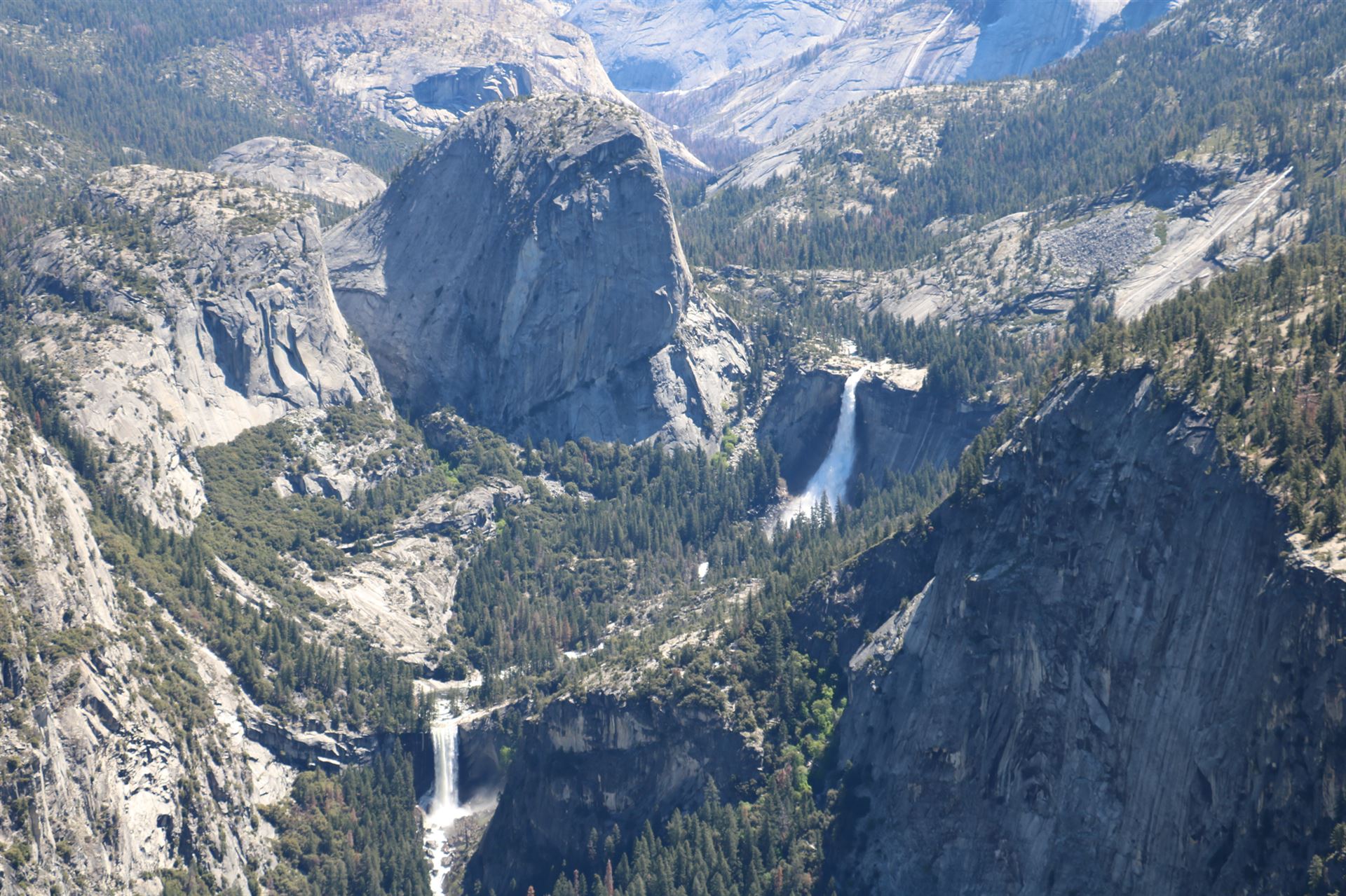 Über die Glacier Point Road erreicht man wunderschöne Aussichtspunkte. Der Glacier Point / ʘ ist vielleicht der beste Aussichtspunkt über das gesamte Tal in einer Höhe von 2.199 Metern. Mit einem grandiosen und einzigartigen Blick auf den Half Dome / ʘ, das Yosemite Valley / ʘ, die Yosemite-Falls / ʘ, den Vernal-Fall / ʘ und Nevada-Fall / ʘ sowie die schier endlose Berglandschaft des Yosemite National Parks.