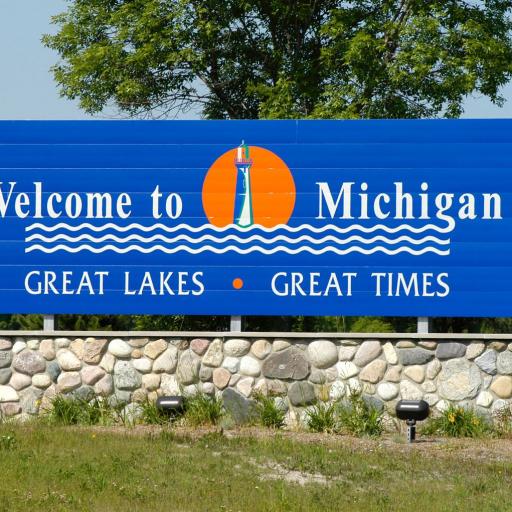Das GM Renaissance Center / ʘ mit seinen 7 Wolkenkratzer prägen die Skyline von Detroit und sind ein beliebtes Einkaufs- und Erlebniszentrum und der Sitz des weltweiten Hauptsitzes von General Motors.