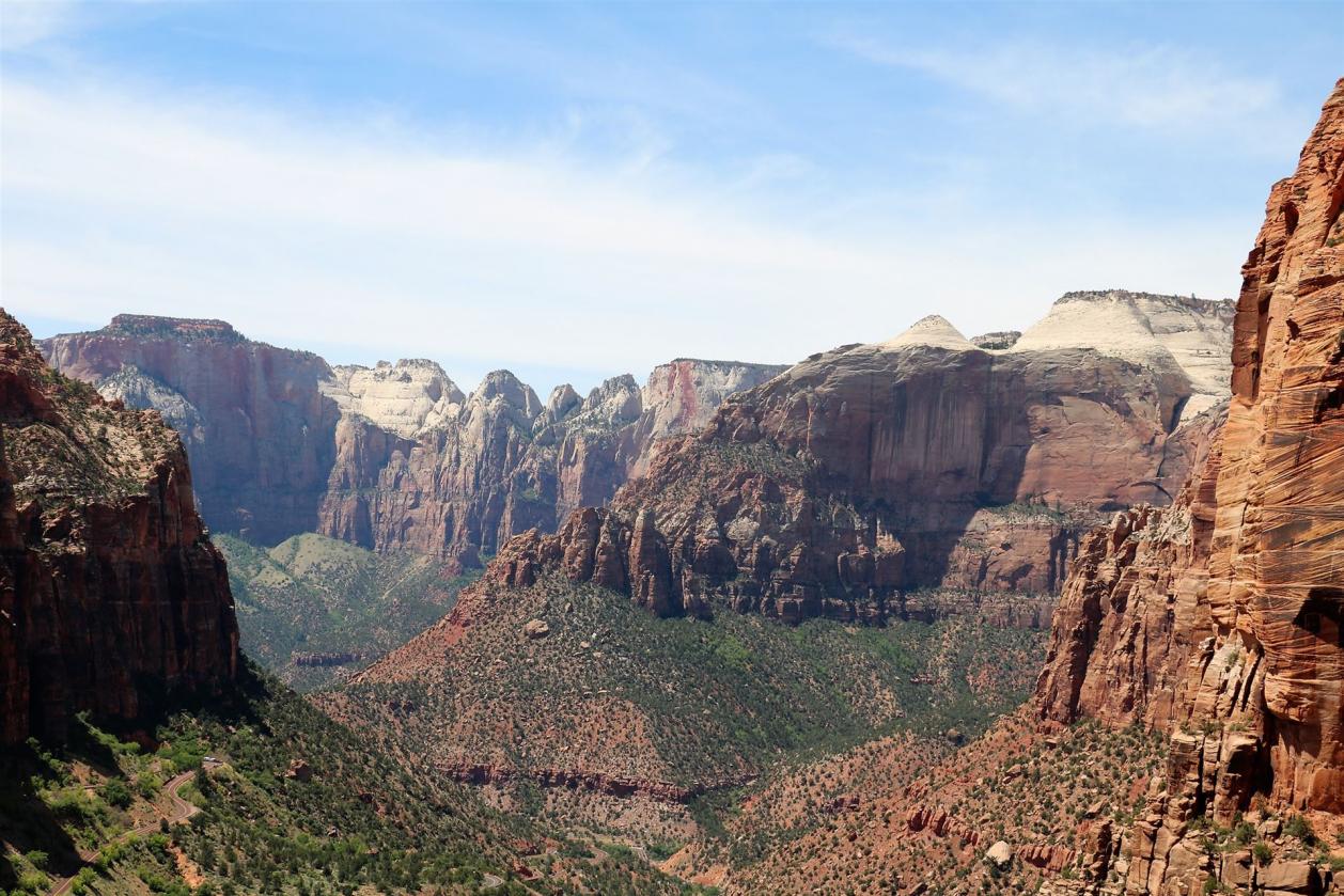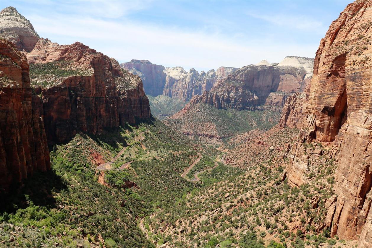 Der Canyon Overlook / ʘ ist ein einfacher Wanderweg - ca.0:30h/1,1km mit tollem Canyon Blick. Kurz und lohnenswert, wenn man von Osten in den Park rein fährt, noch vor dem Carmel-Tunnel wenige Parkplätze (P1 oder P2), die schnell voll sind.